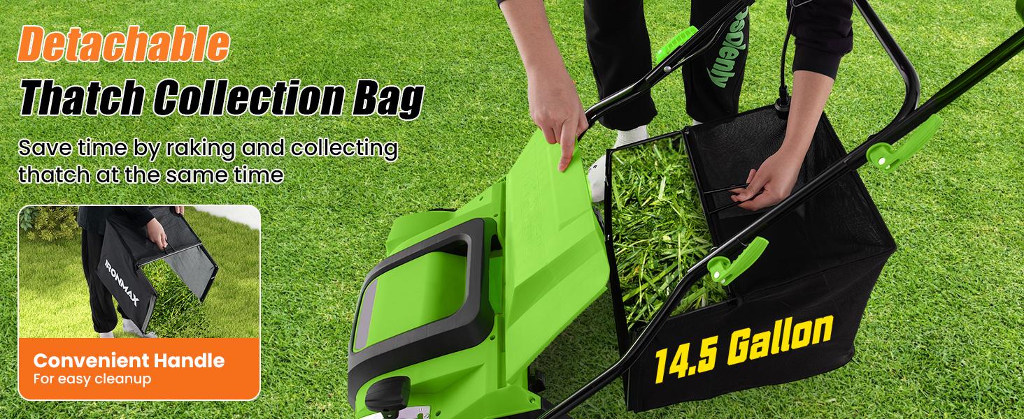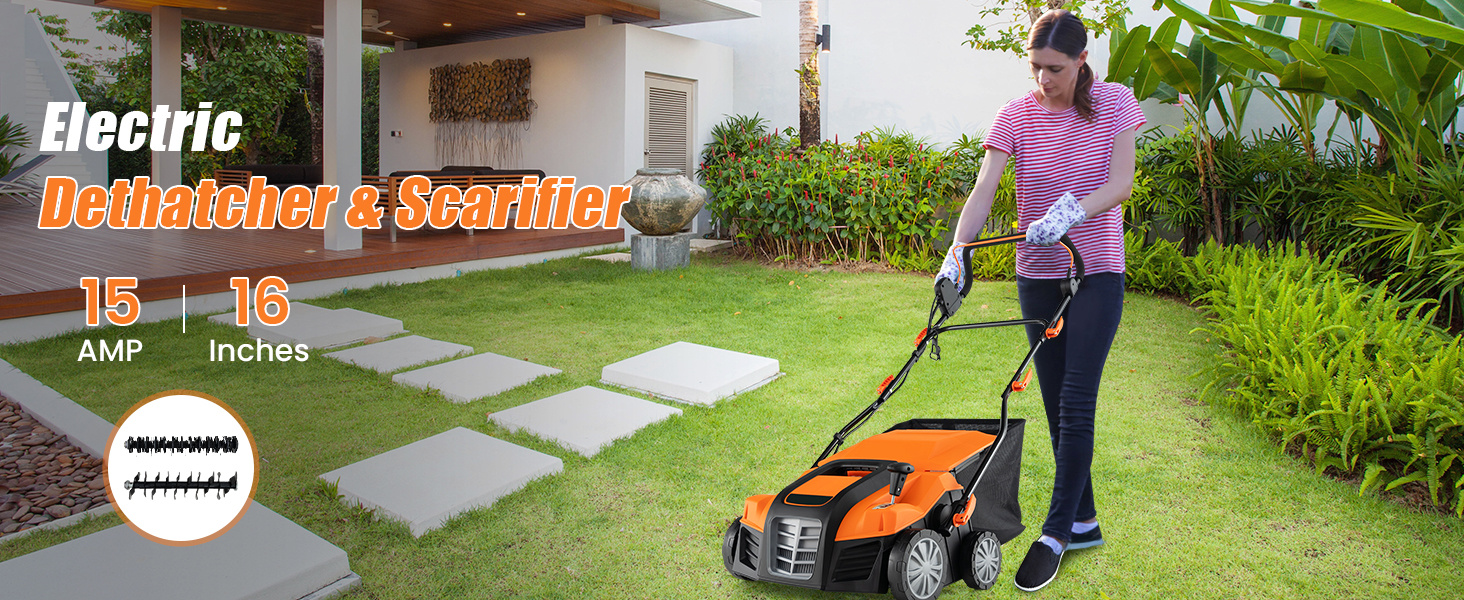 • 2-IN-1 dethatcher and scarifier for effortlessly removing thick dead layers and cutting grassroots for healthier growth