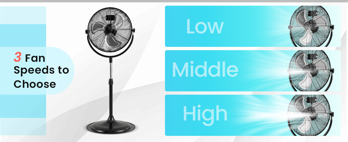• 3 fan speeds and 360° tilt feature suit different needs