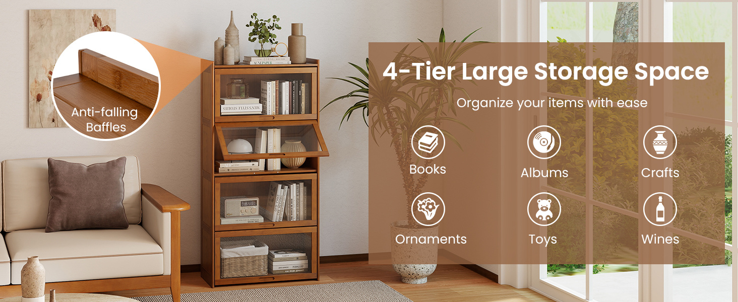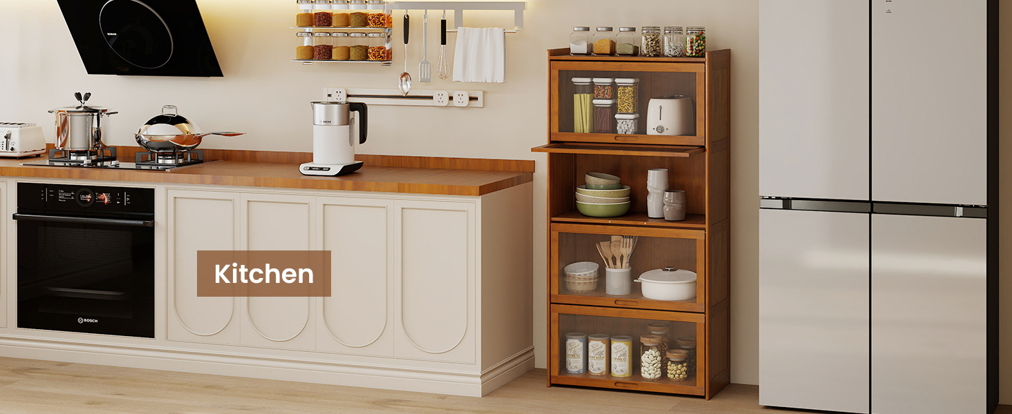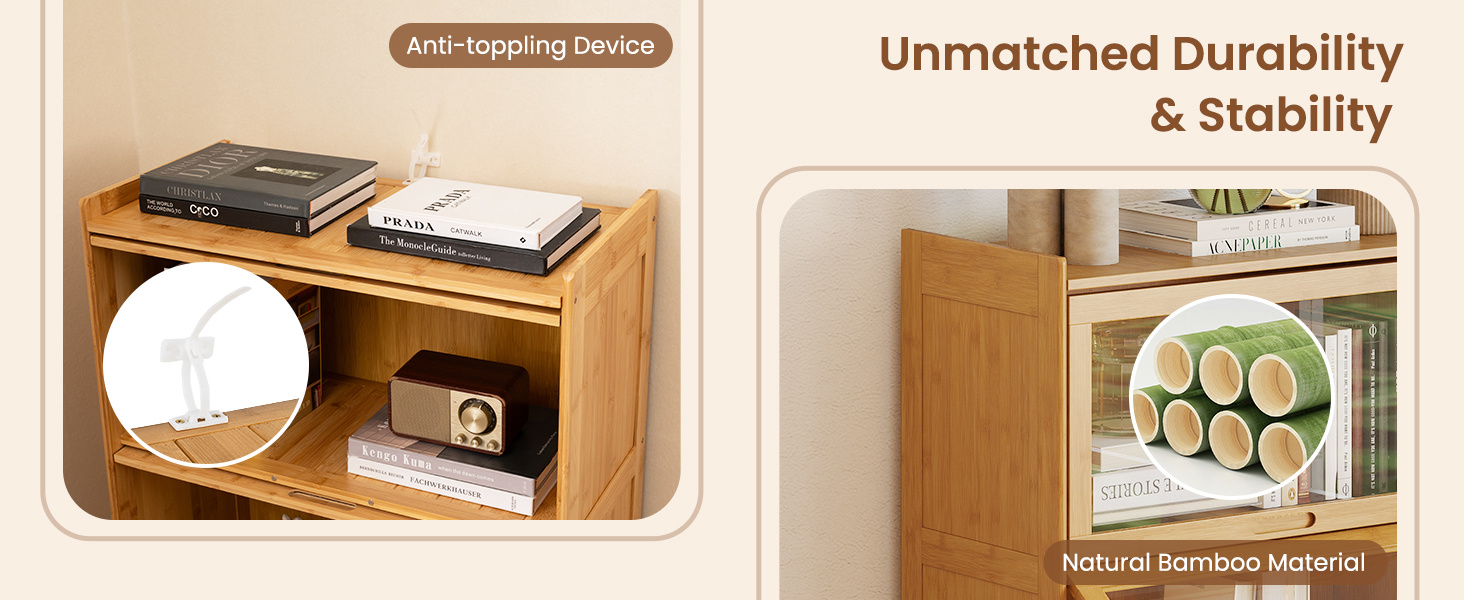 • Anti-falling guardrails of the top shelf contributes to tidy storage