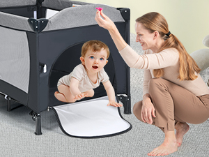 • Designed with smooth side zipper which allows baby climb in or out easily